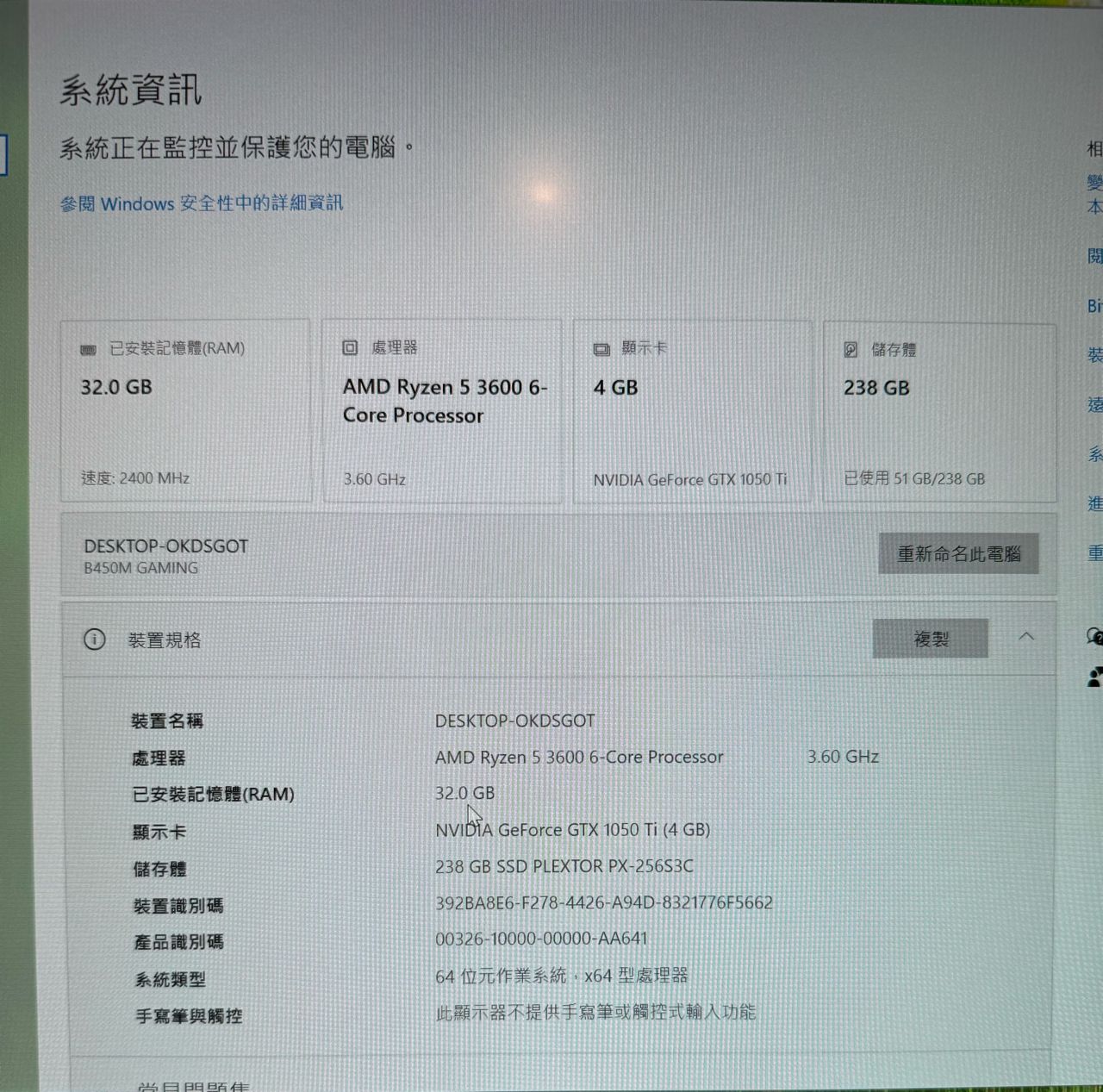 [賣/新北/面交] R5-3600整機32G 1050TI