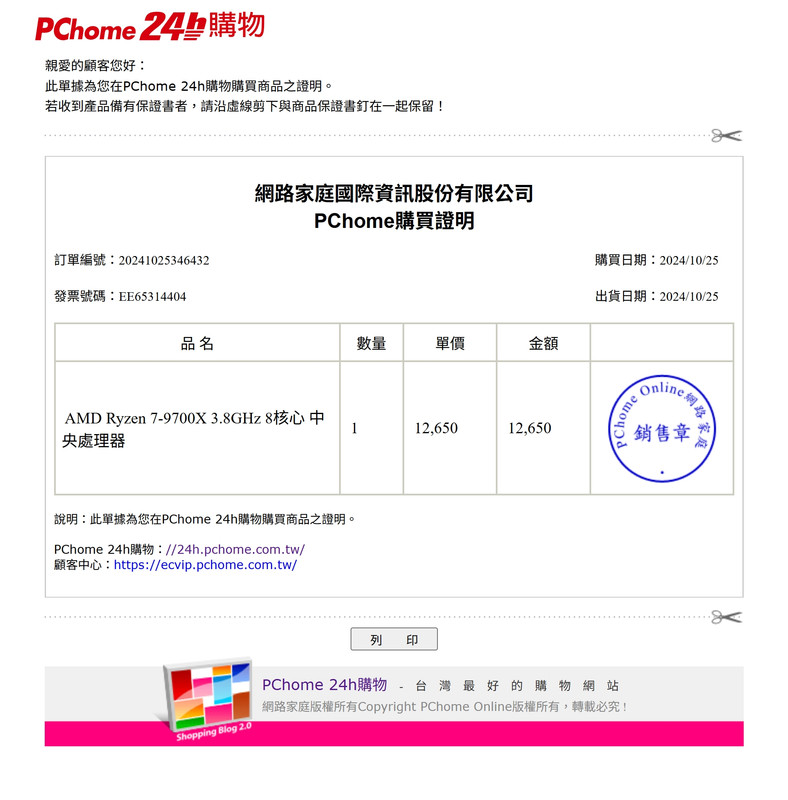 pchome 2024 10月 購入 建達代理