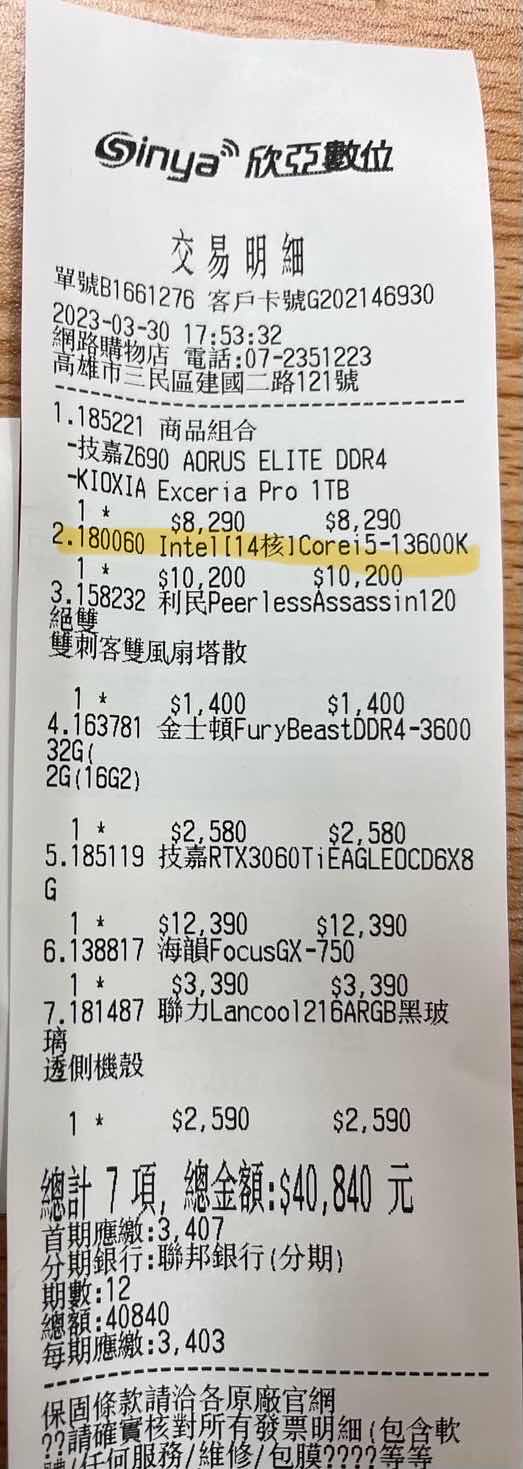 ◎硬體型號: intel 13600k