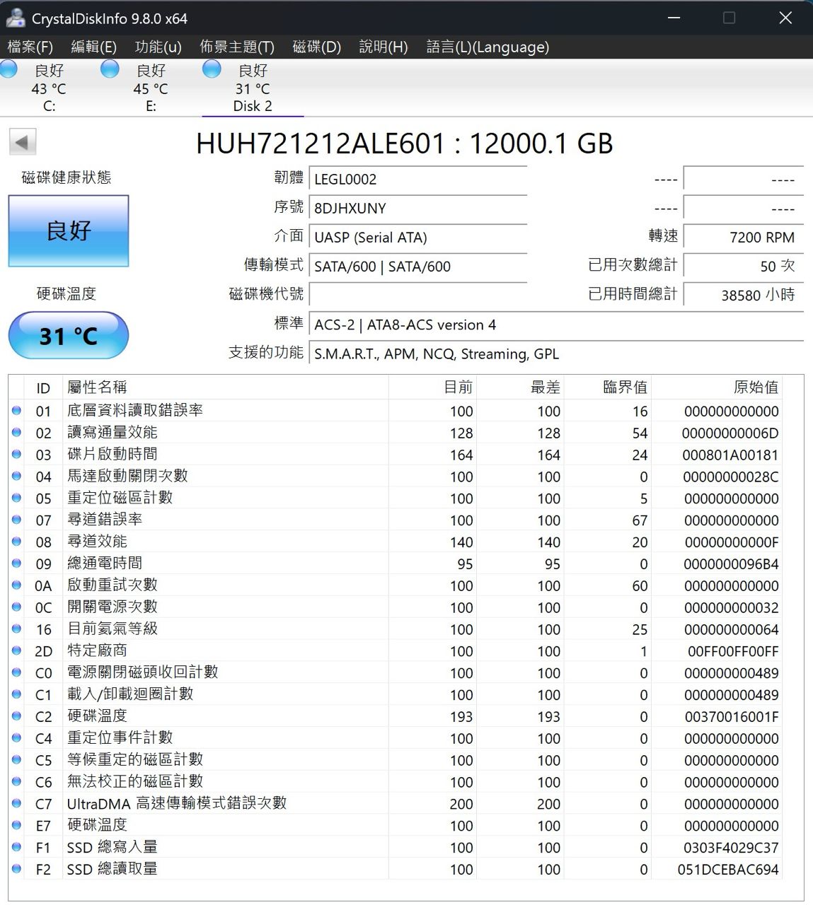 ◎硬體型號: HGST 企業級 硬碟 12TB 12T HUH721212ALE601 氦氣硬碟
