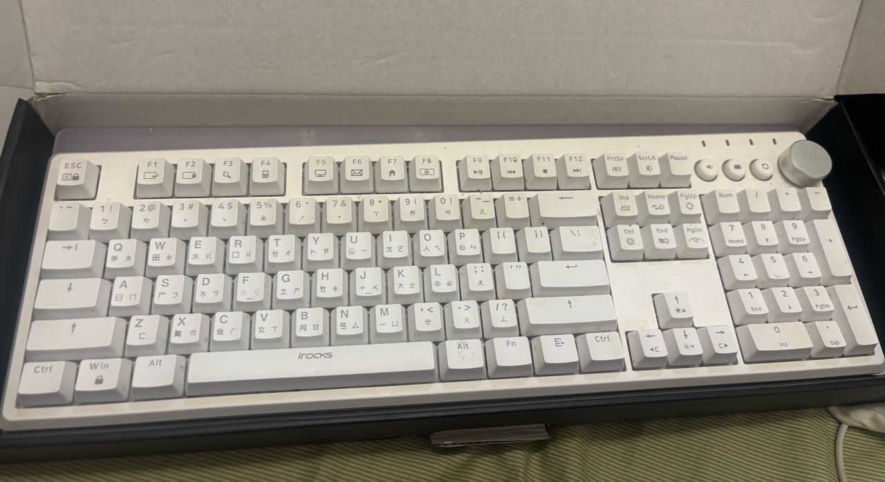 ◎硬體型號: irocks K71R-Gateron 機械式鍵盤 (白色/無線/紅軸/PBT/金屬旋鈕)