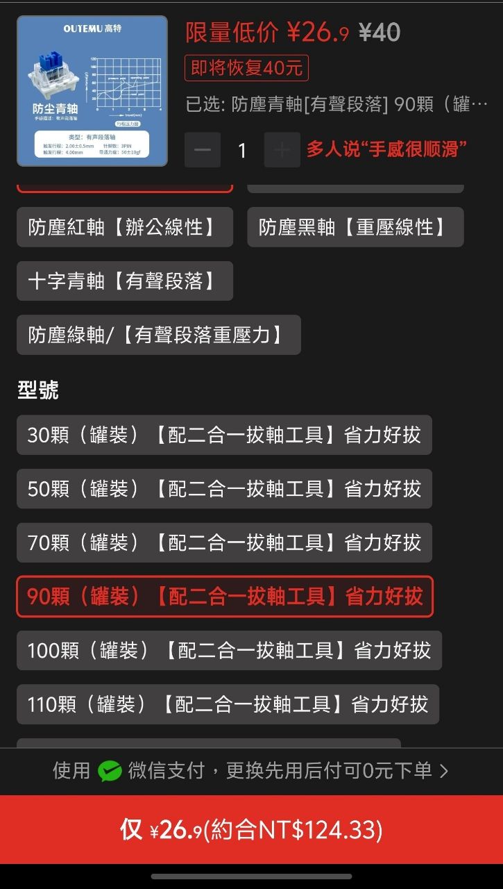 ◎硬體型號: 青軸 軸體 90顆(剛剛數完好像是94顆)