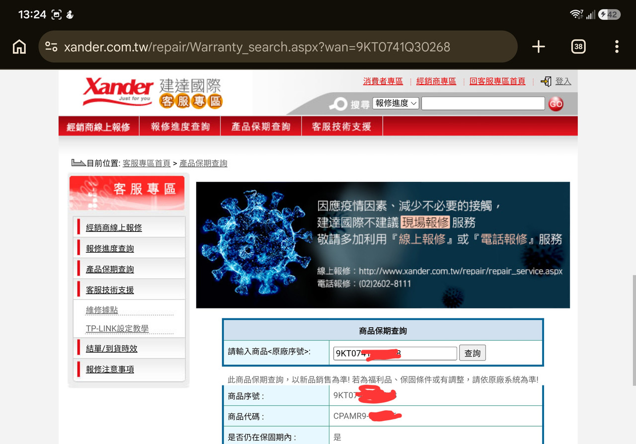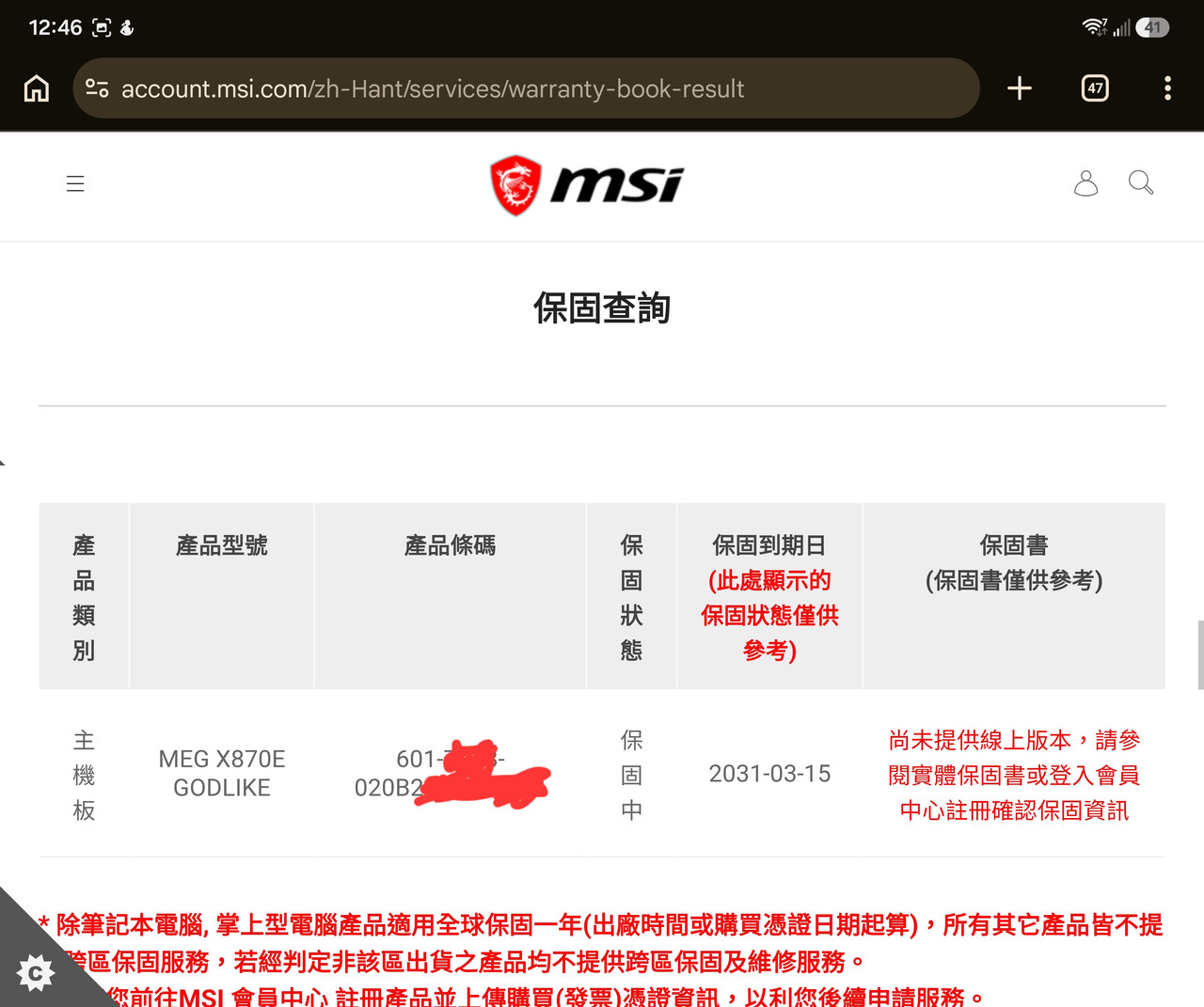 已註冊五年保固至2031/03/15(如附圖)