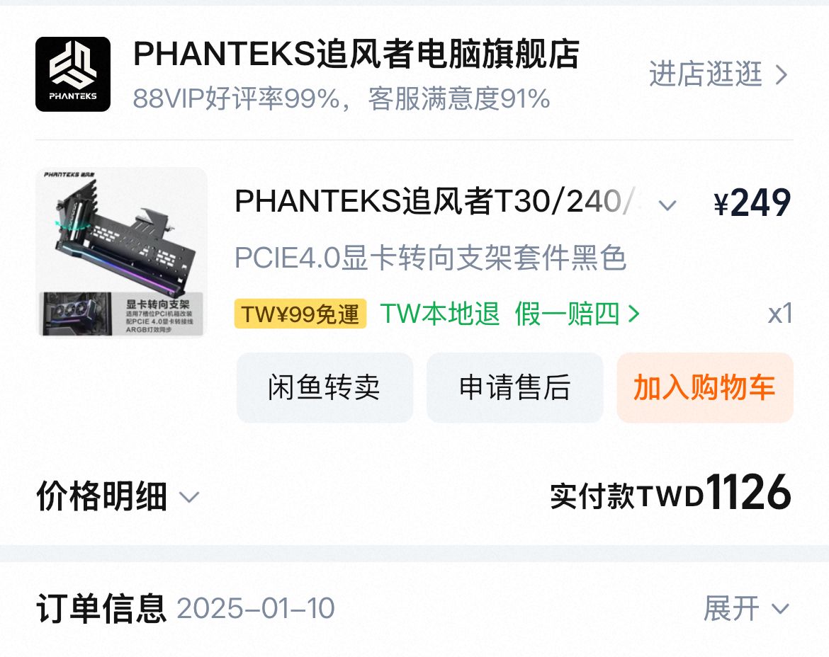 2. 2025/1淘寶購入無保 功能正常 卡扣斷裂 有額外固定框能固定顯卡
