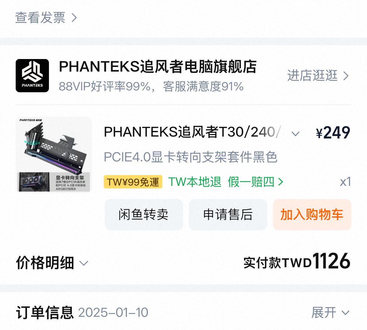 2. 2025/1淘寶購入無保 功能正常 卡扣斷裂 有額外固定框能固定顯卡