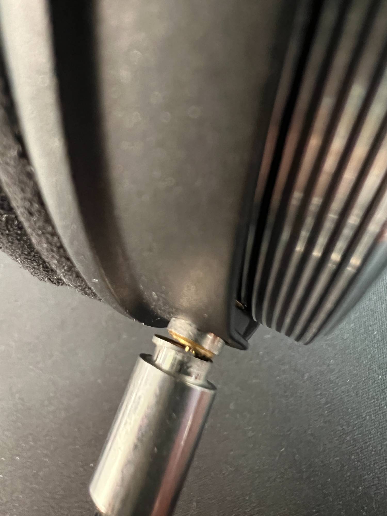 用手機近距離拍可以稍微拍得出內部兩根線材仍與A2DC接頭相連,其餘部分皆已斷裂。