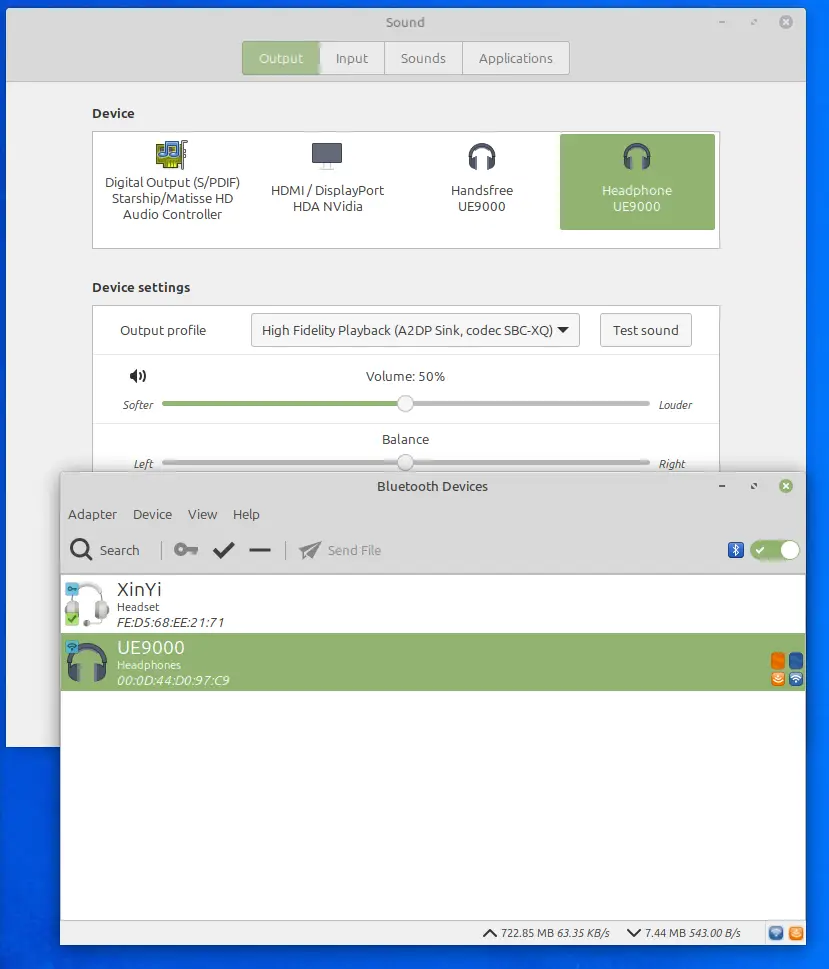 今天發現,UE9000在Linux mint系統下,可以用SBC-XQ模式使用!