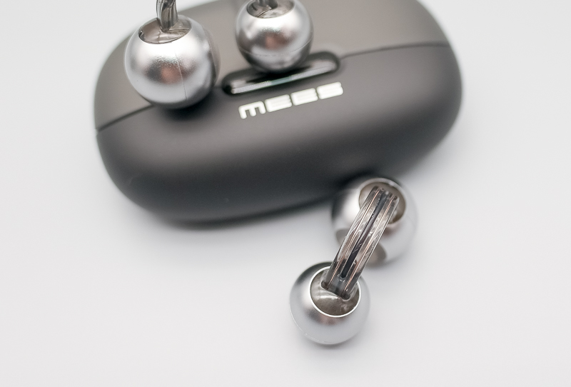 過那截透明的 C 型連接橋,可以直接看透裡頭的金屬走線。仔細端詳發聲的前球,邊緣