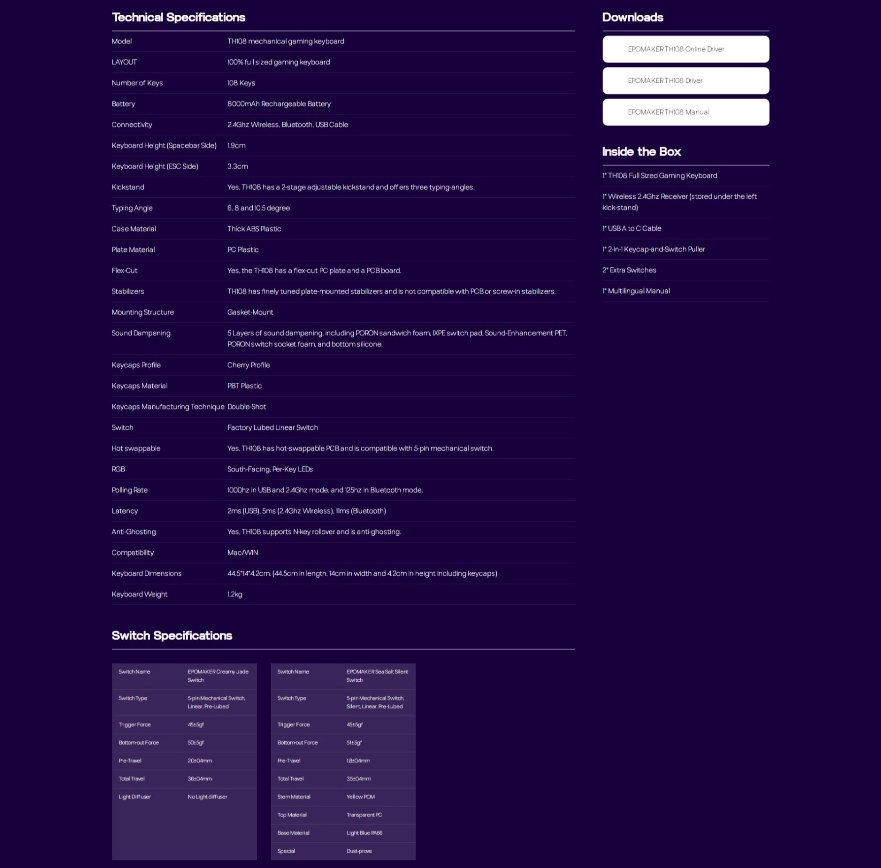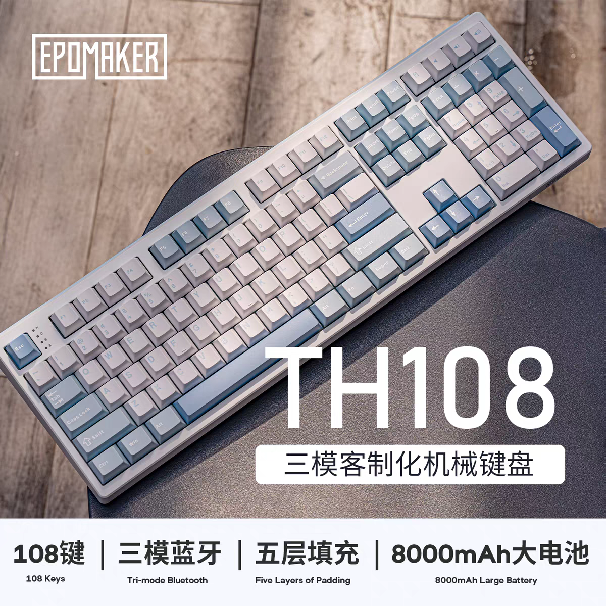 於是有了今天這把,同樣是全尺寸/三模/熱插拔的 EPOMAKER TH108