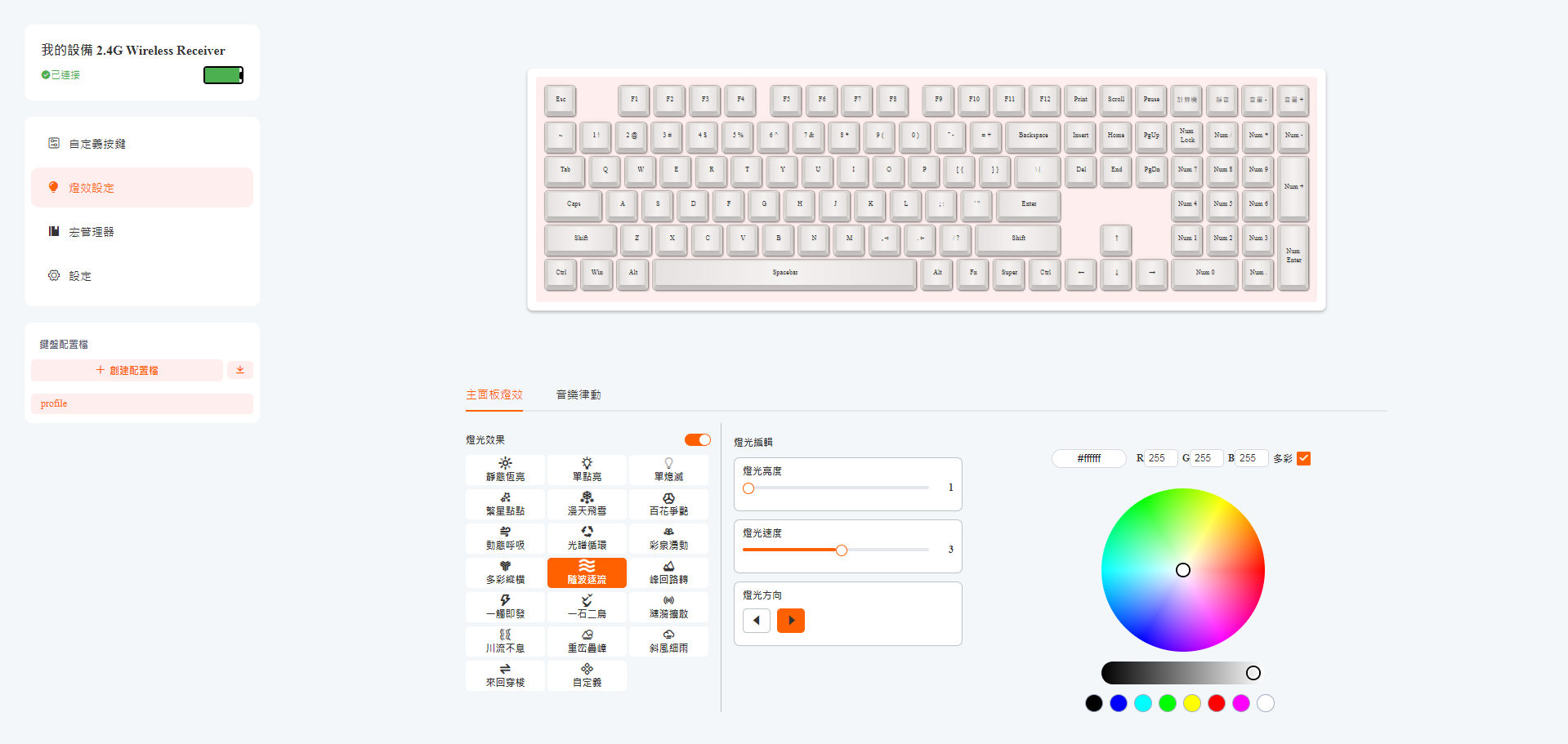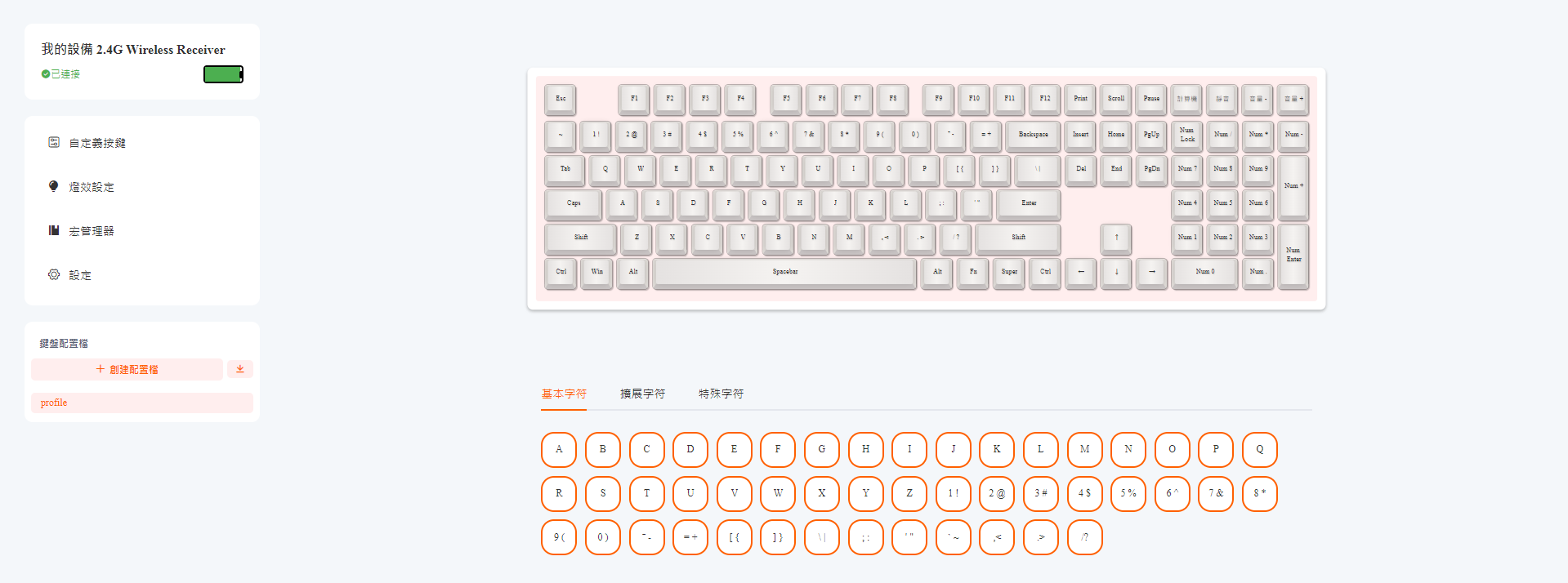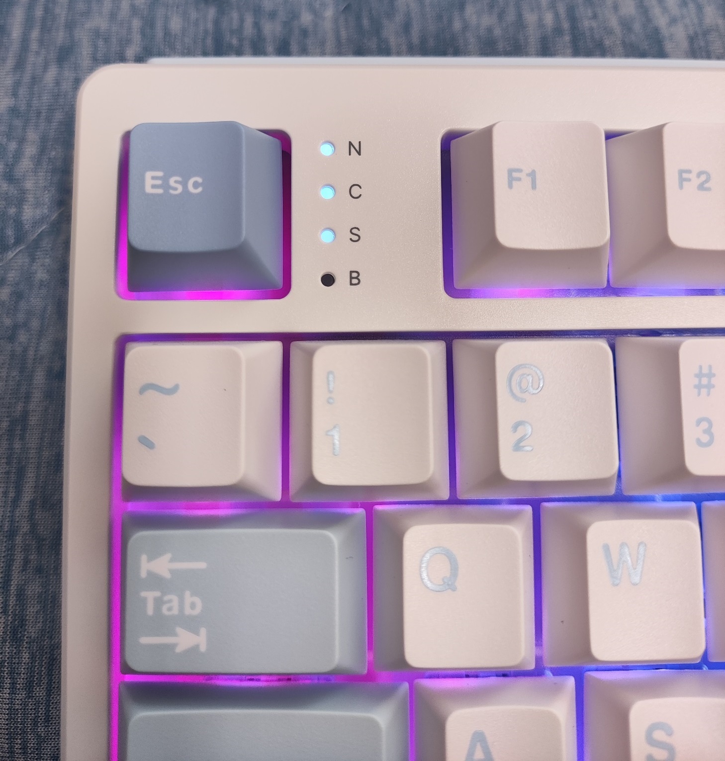 鍵帽為 Cherry 高度、二射成形,表面磨砂感細膩