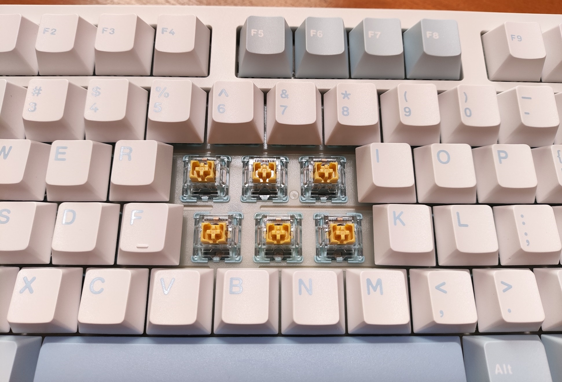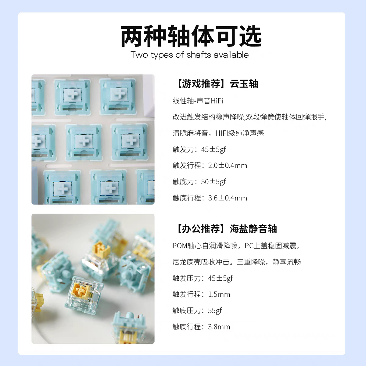 這次購買兩把藍白色,云玉軸與海鹽靜音軸各一