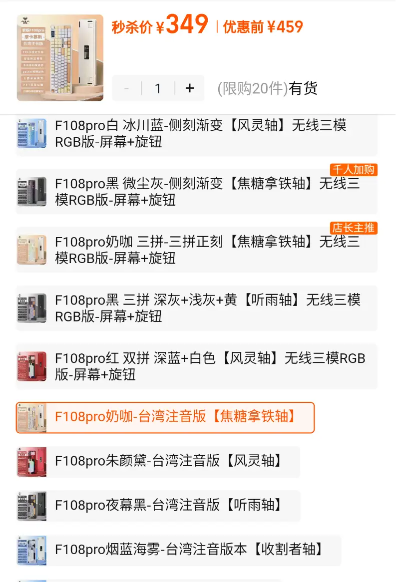[鍵盤] 淘寶的狼蛛F108pro有注音版了?