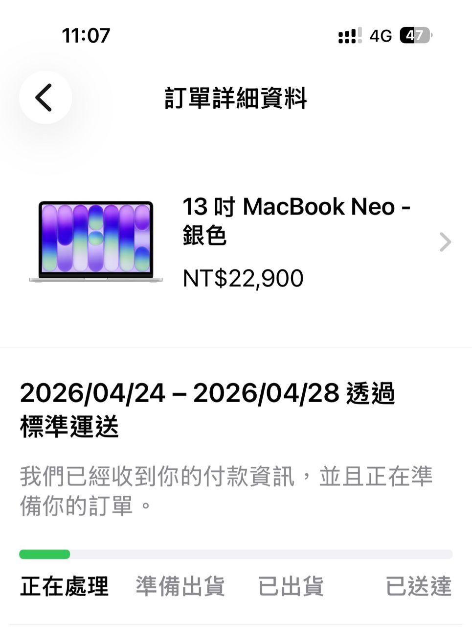 只有air 13寸 10核 GPU版本可以縮短到4-6個工作天。