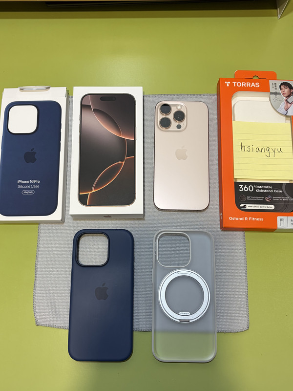iPhone 16 Pro附上原廠丹寧色矽膠保護殼和Torras Ostand R Fitness保護殼