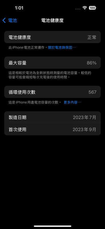 iPhone 15 Pro電池健康度86%,iOS 18.6.2,Hoda抗藍光AR抗反射保護貼