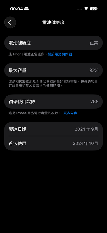 iPhone 16 Pro電池健康度97%,iOS 26.0,Hoda藍寶石保護貼