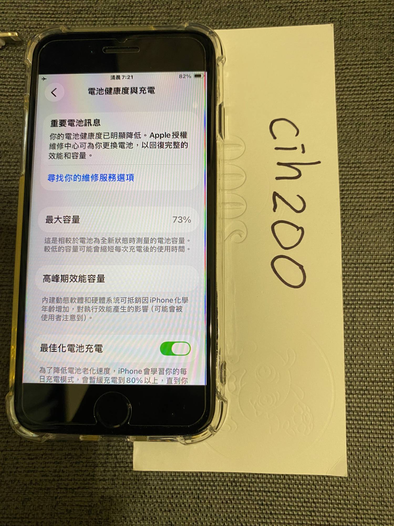 電池健康度73%,功能正常。外觀無破損,但部分掉漆。