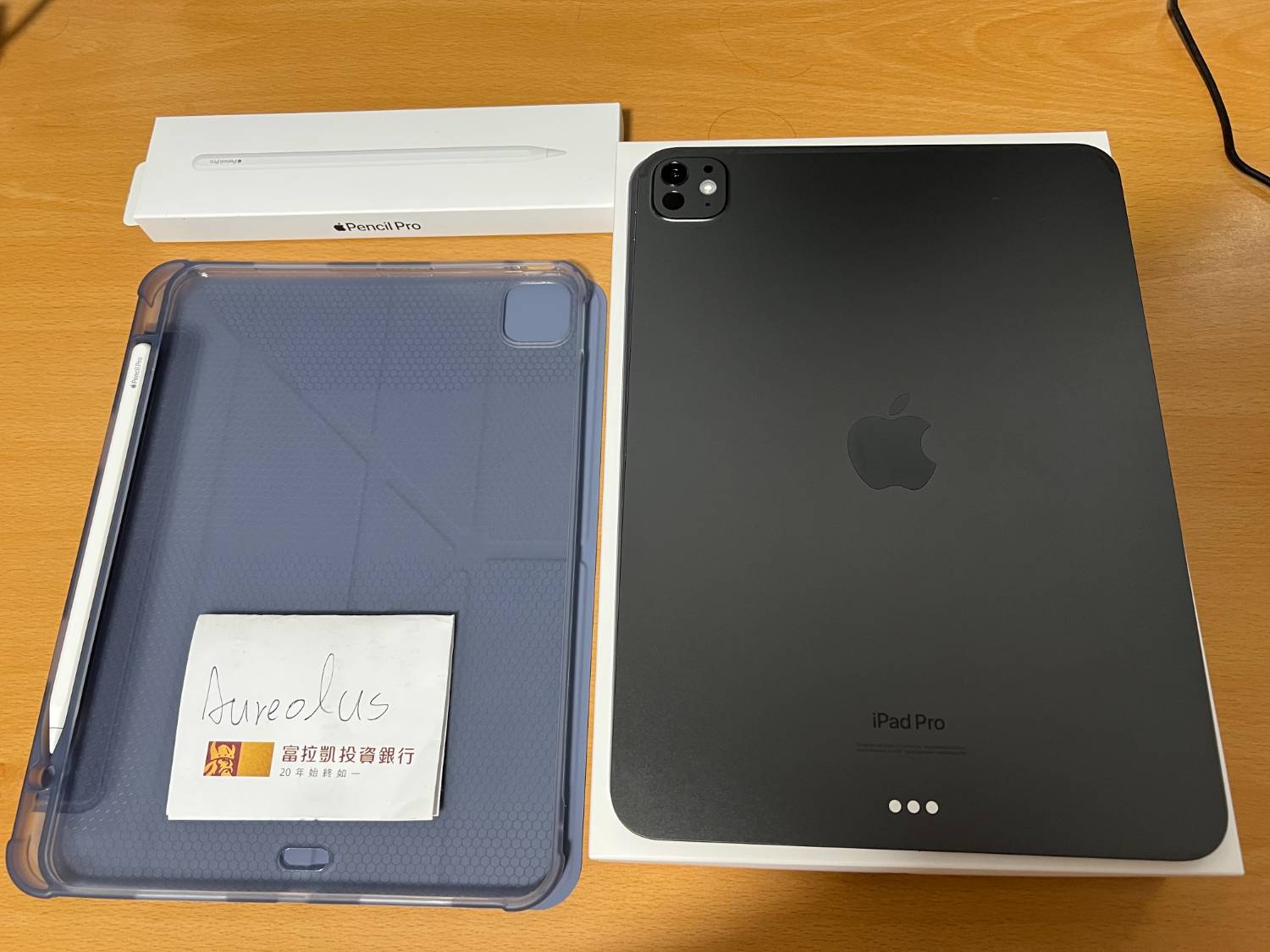 正面已貼上玻璃保護貼、附送一個Y折翻蓋套附筆槽(左側)