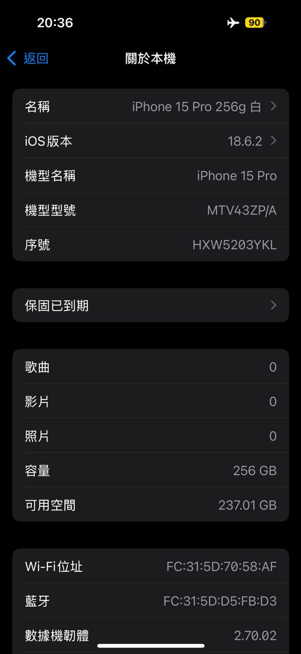 原廠電池90%,無拆修紀錄,邊框有使用痕跡,功能皆正常。