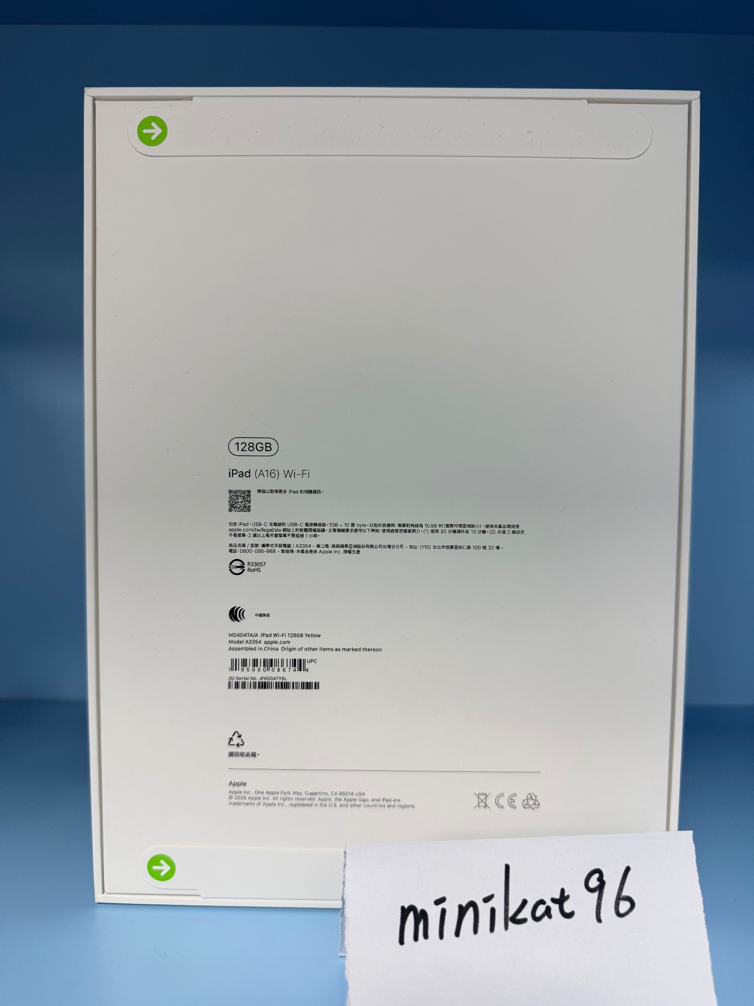 1. Apple iPad 11 (A16) Wi-Fi 128G 黃色(A3354)