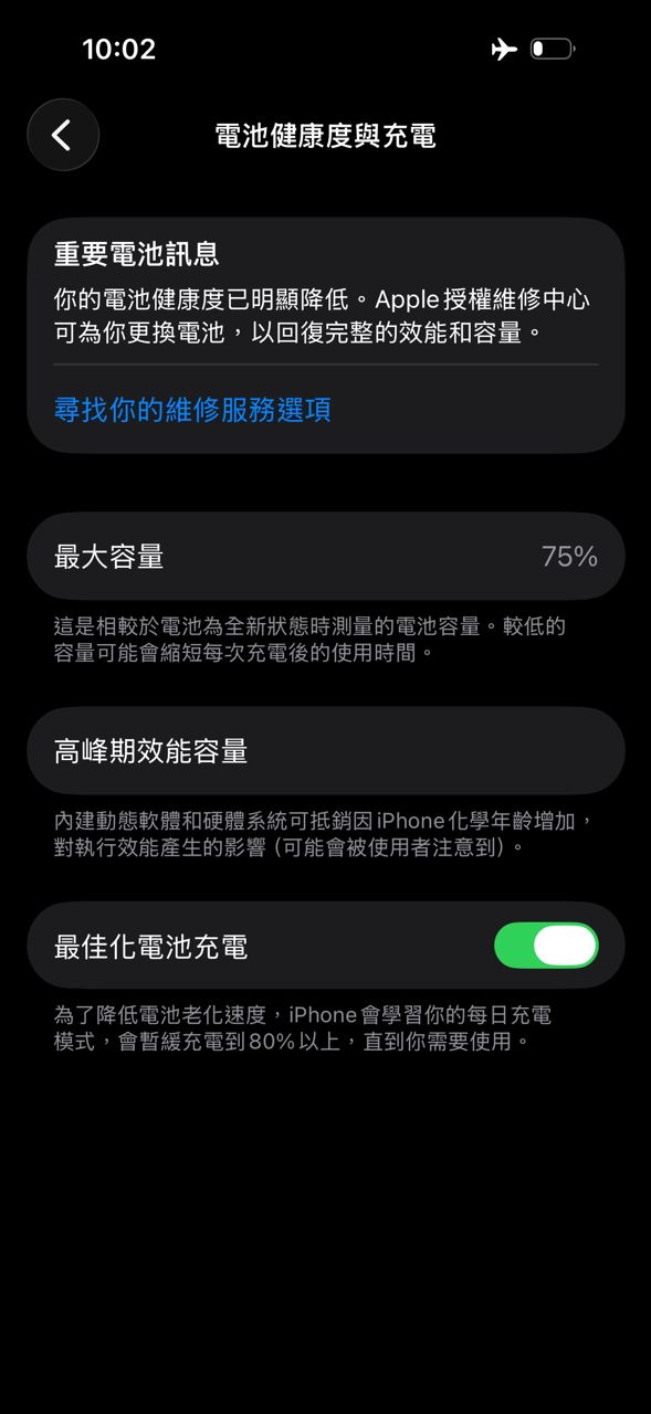 電池健康度 75%
