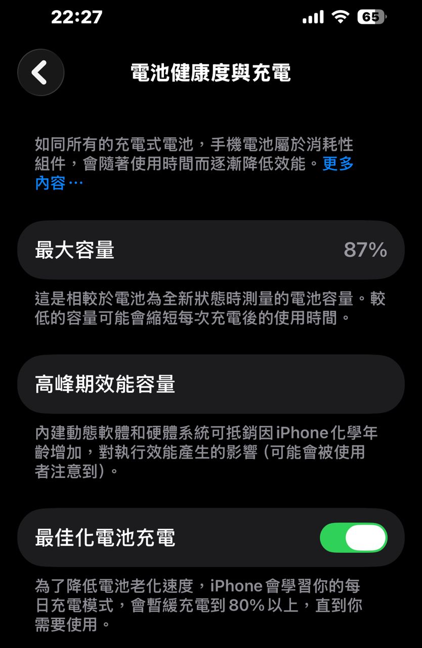 電池健康度87%