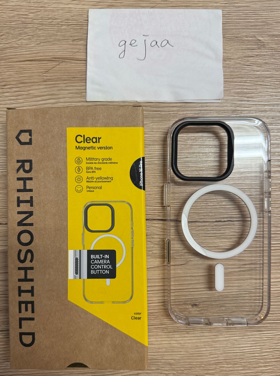 近全新, 有犀牛盾原廠完整盒裝, 2025 9月製造 , MagSafe 磁圈有脫膠痕跡,但不影響使