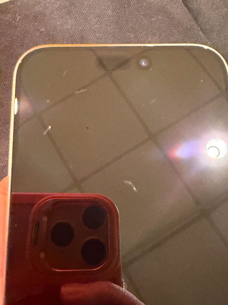 購買時還沒貼膜就被鑰匙刮到,螢幕有輕微刮痕,貼上保護貼基本上不明顯(如圖)