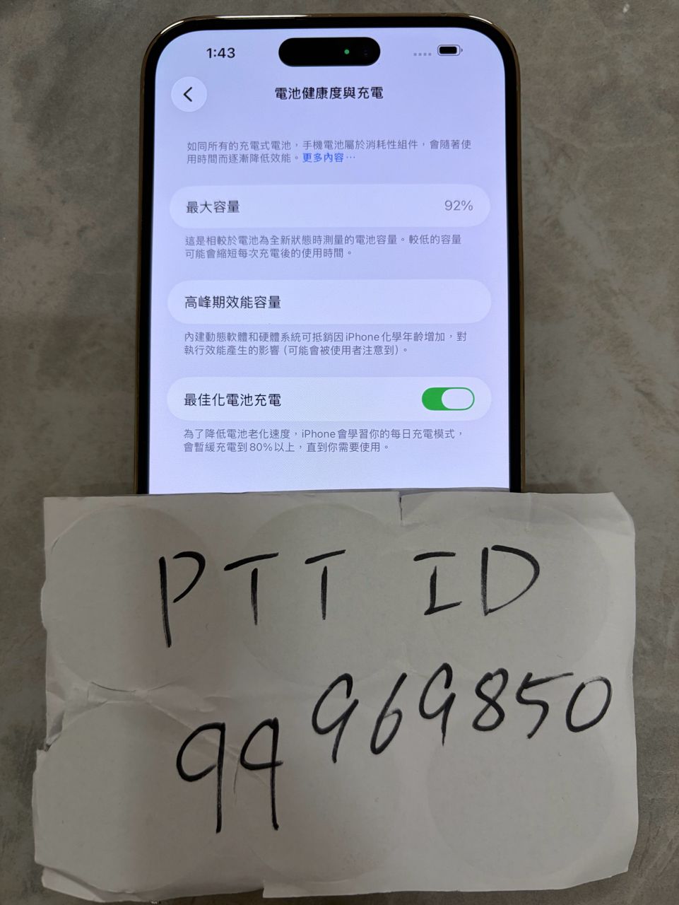 3.iPhone 14 Pro Max 256G金色,電池健康92%
