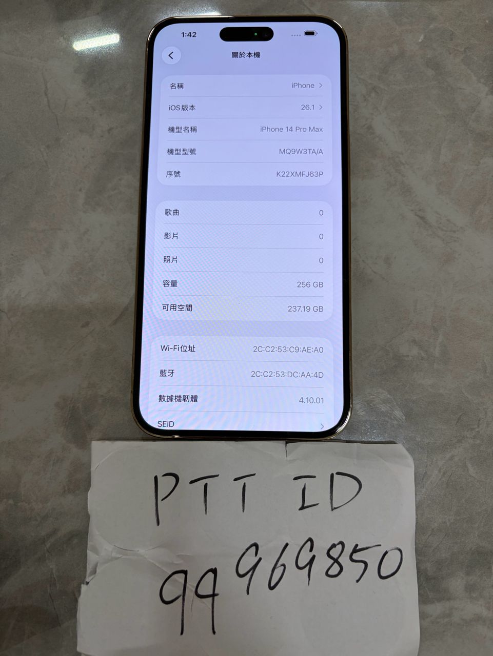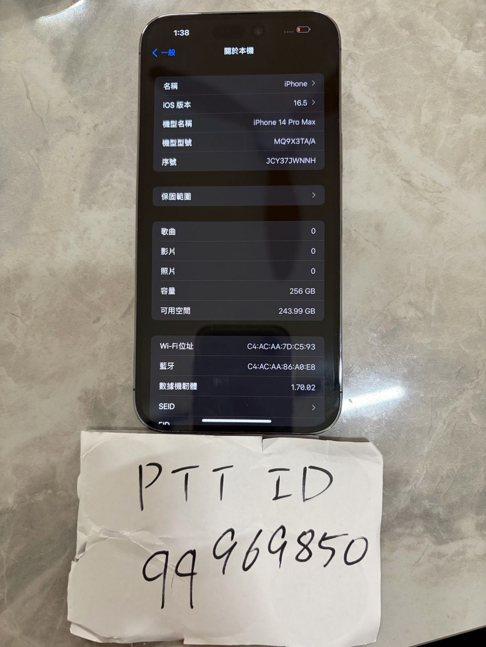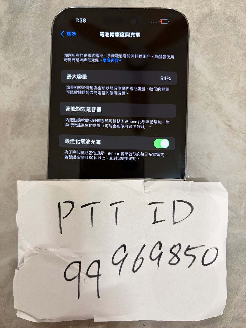 2.iPhone 14 Pro Max 256G紫色,電池健康94%,螢幕有細小刮痕