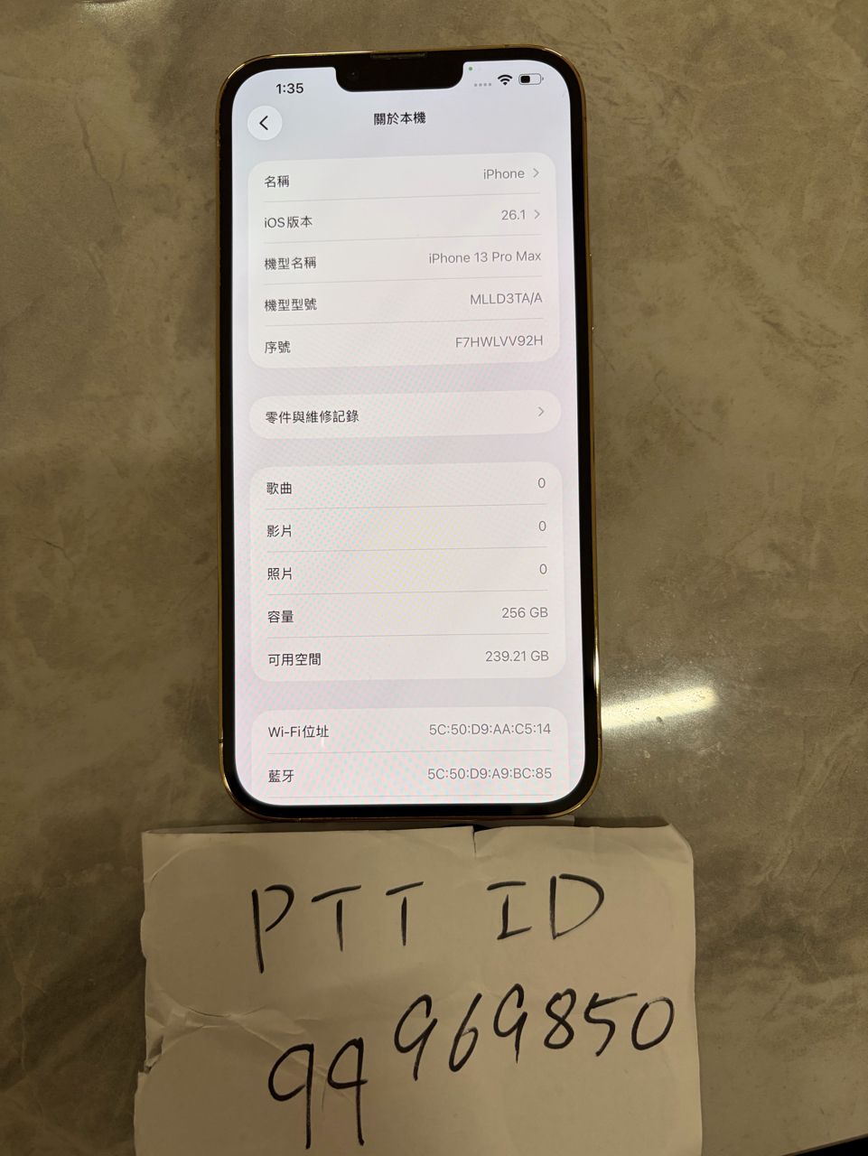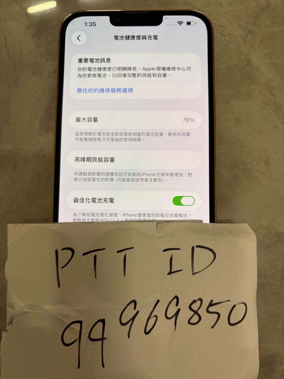 1.iPhone 13 Pro Max 256G金色,電池健康78%