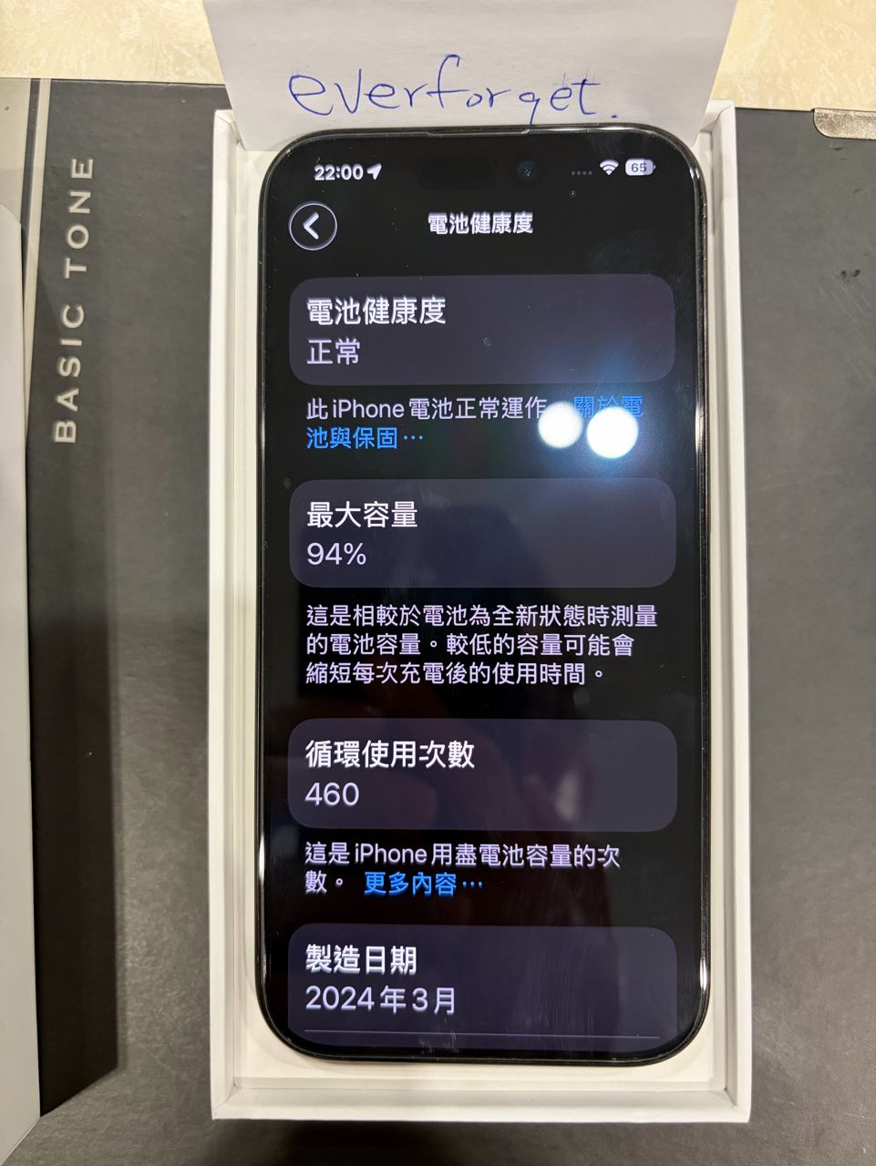 電池目前94%,開箱後全程使用殼與膜貼,外觀無傷。