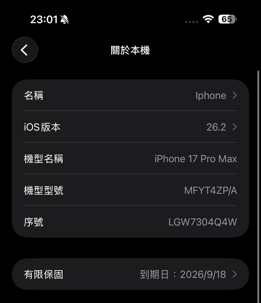 [型號] iphone17 pro max
