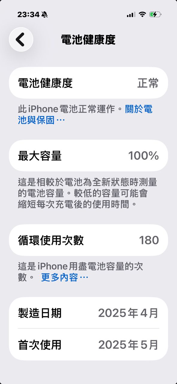 物品狀況:外觀無傷/電池100%/循環次數180