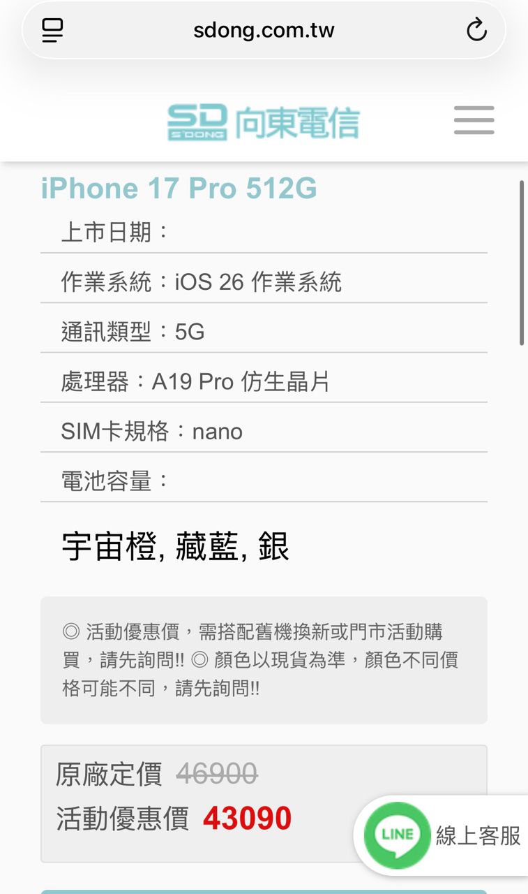 [型號] iPhone 17 Pro 512G 藏藍色