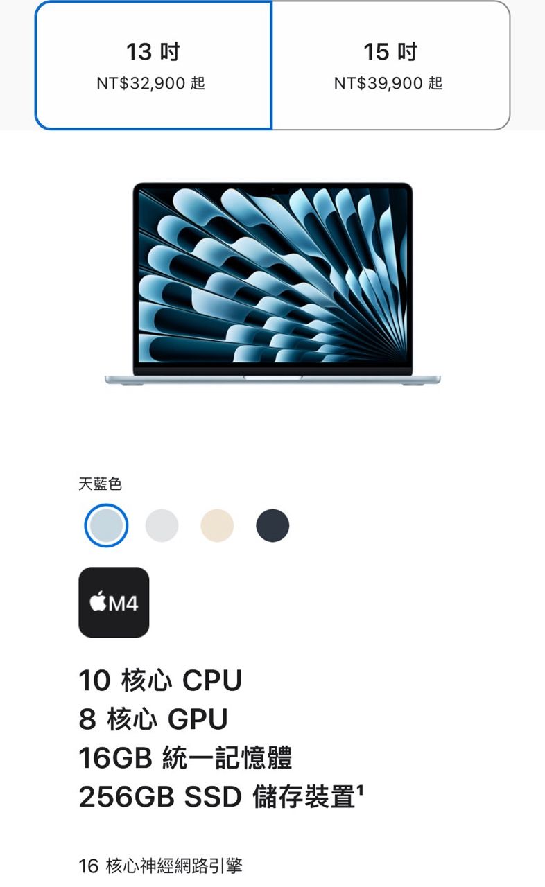 [販售] MacBook Air 13‘ M4 256G skyblue