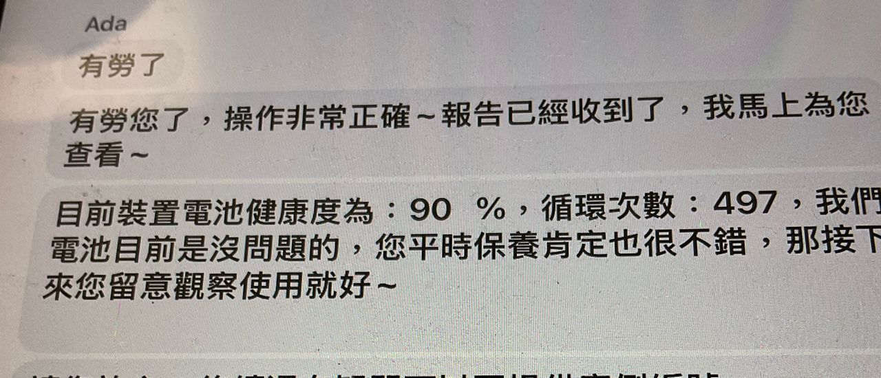 客服查詢電池健康度為90%