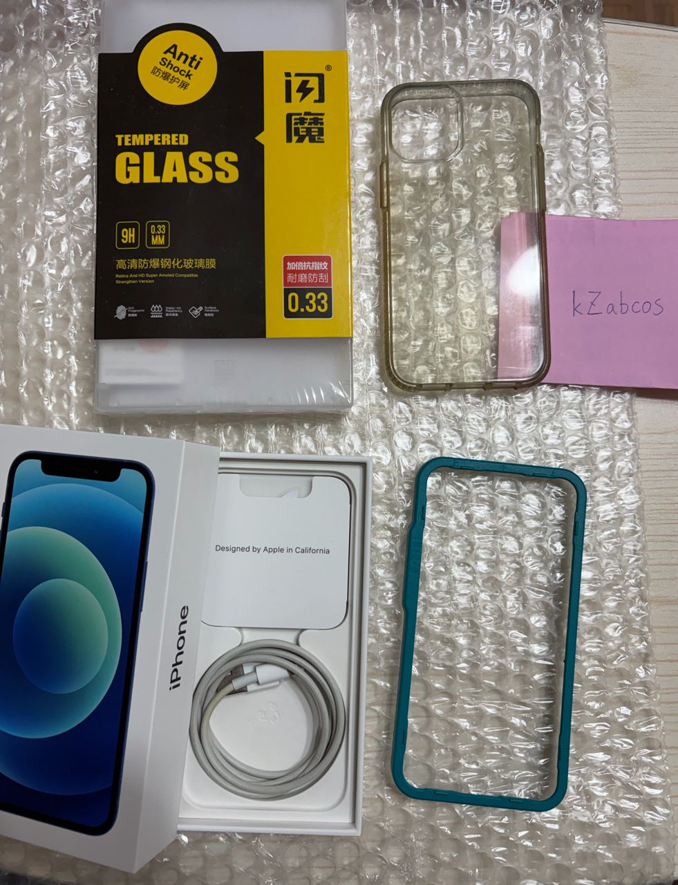 [盒裝配件] 原廠盒裝、原廠充電線、透明空壓殼、閃膜玻璃貼(全新)、貼膜神器