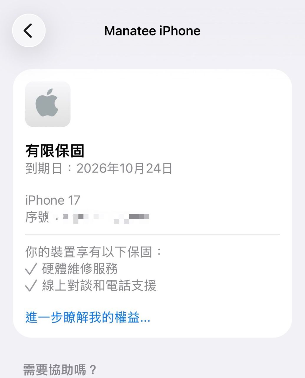 憑機內的apple care時間標籤去原廠保固應該沒問題