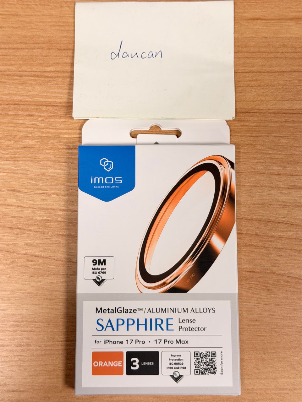 [販售] 全國 imos 藍寶石鏡頭貼 17 Pro 橘色