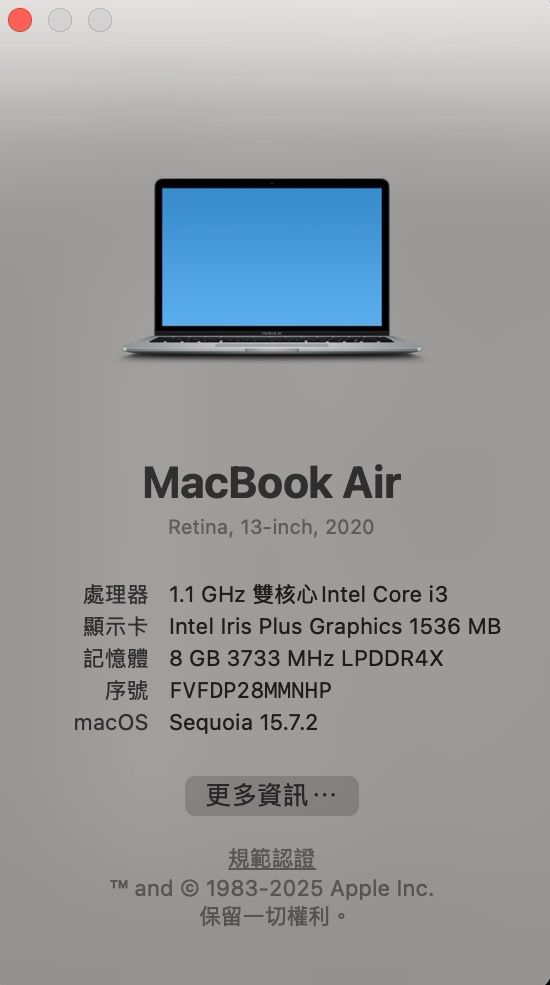 [販售] 全國 MacBook Air 2020 8G/256G/i3 銀