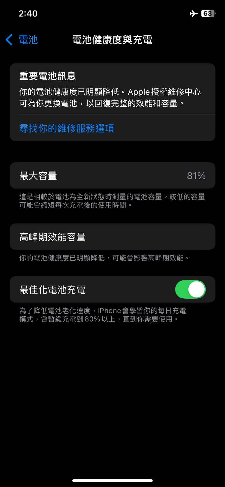 1.電池健康度 81%