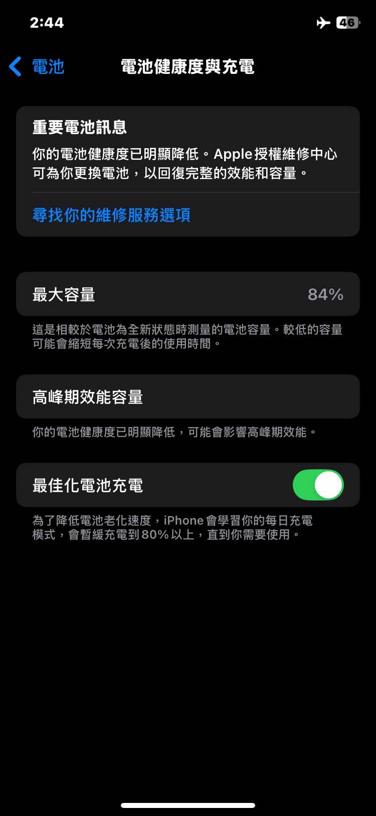 2.電池健康度 84%