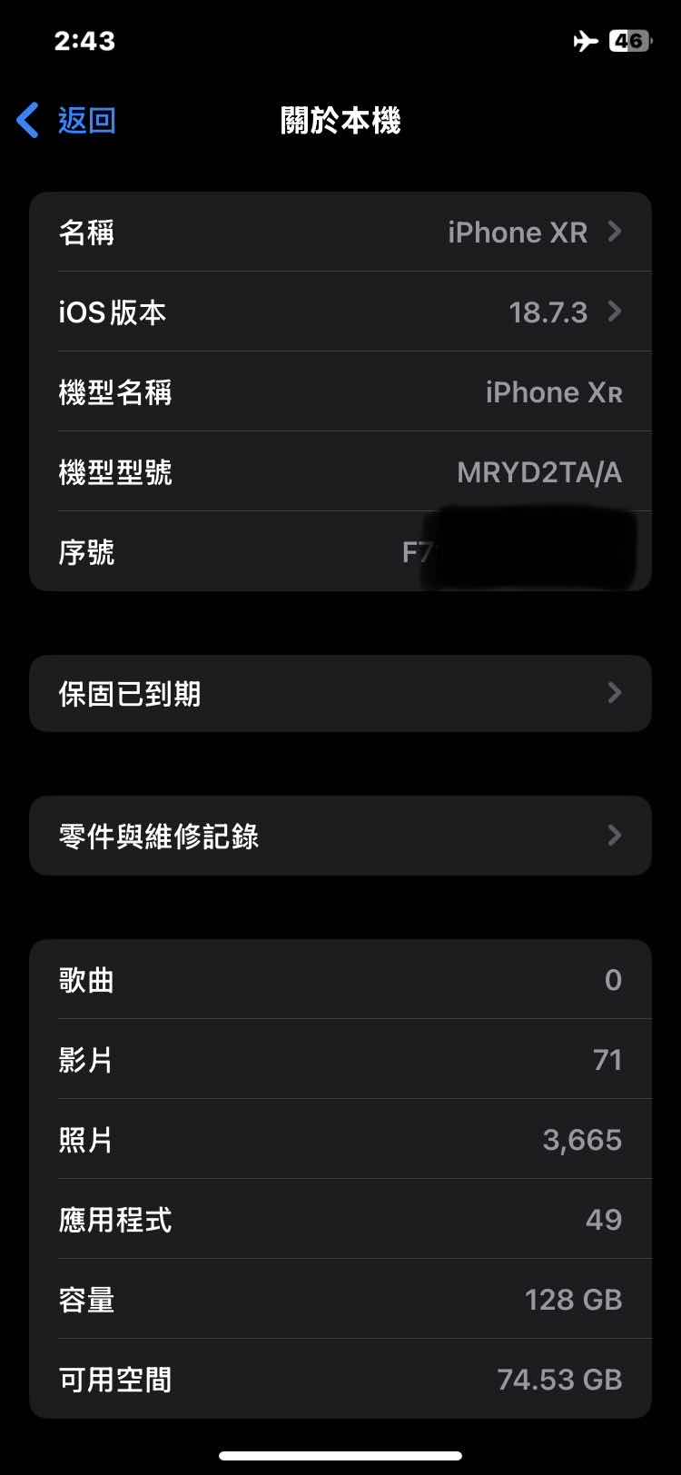 無維修或更換硬體記錄,長輩使用機正常換下