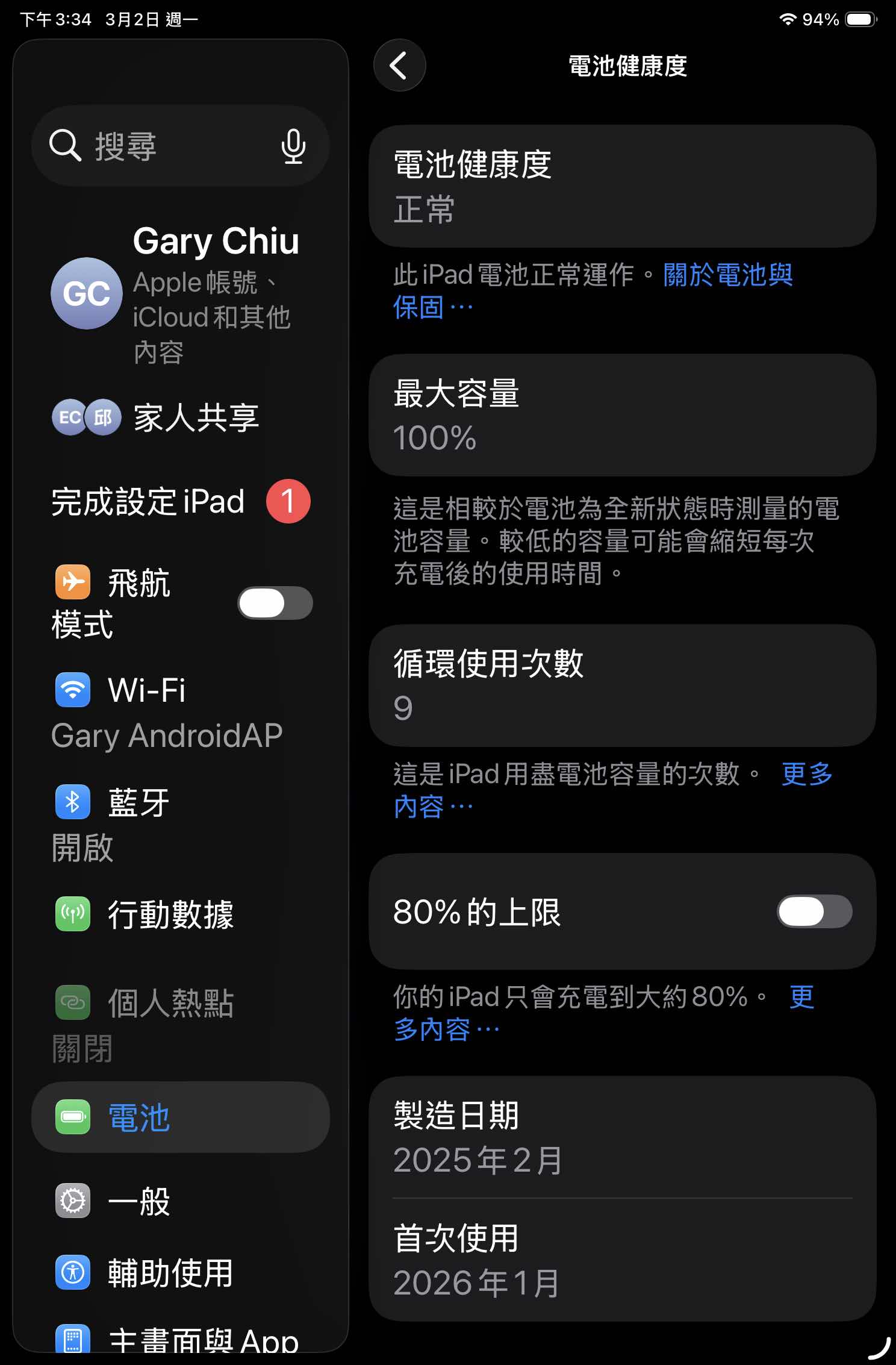 電池健康度100% ,少用電池循環次數9,買來就貼保護貼,外表無傷,今年一月購買保固到27年1月17