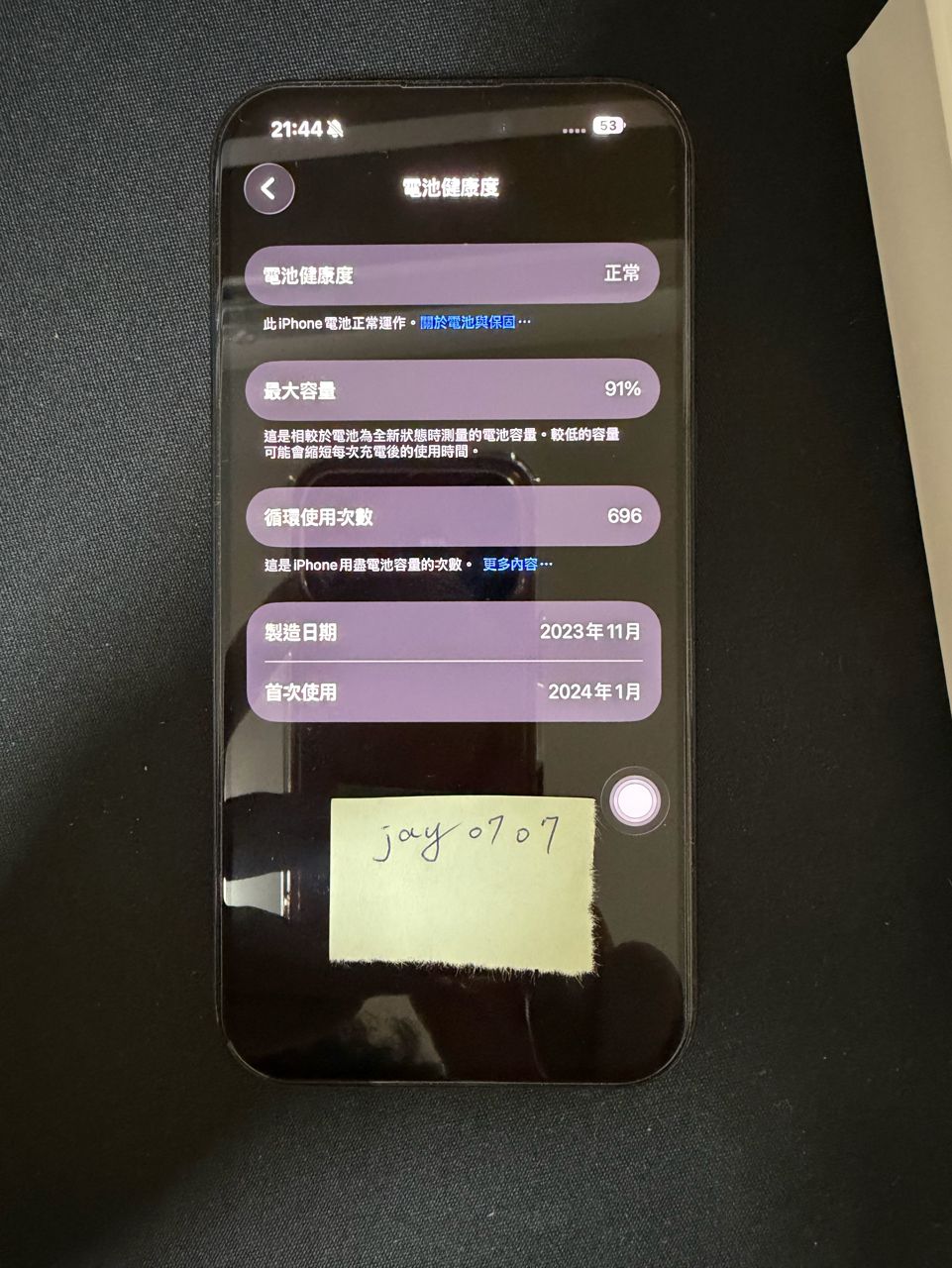 已貼上玻璃貼,螢幕無傷,右上角有小擦傷 功能正常,電池健康度91%,附原盒裝、原廠