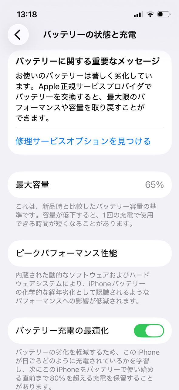 尚未換過電池,電池容量65%