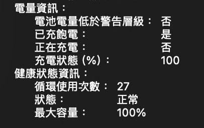 循環27次,電池100%,感謝 Macshop版,感謝版友