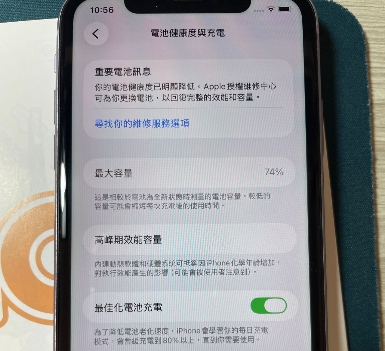 2.外觀9成新,長輩一手機汰換,電池74%,無拆修紀錄,功能正常。有貼保貼鏡頭貼。