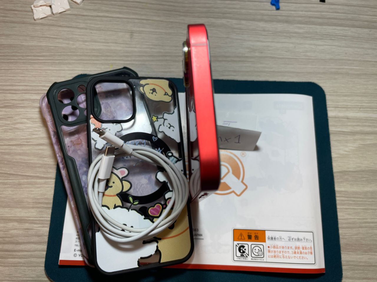 1. 單手機、手機殼3個、充電線